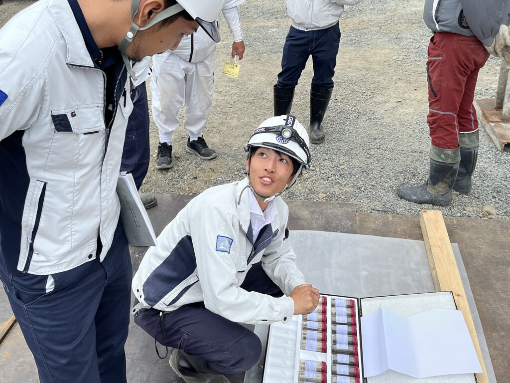 市原:杭打ち作業が完了したら、次は基礎部分の鉄筋の配筋や、コンクリートの打設時に配合確認などを行います。建物を支える重要な部分なので、この工程も大切です。