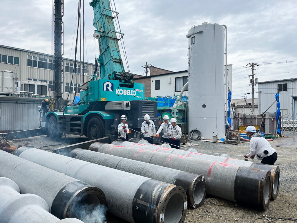 山田:サイロは1日で設置できるんですよ。杭打ちの準備自体も1日で完了します。