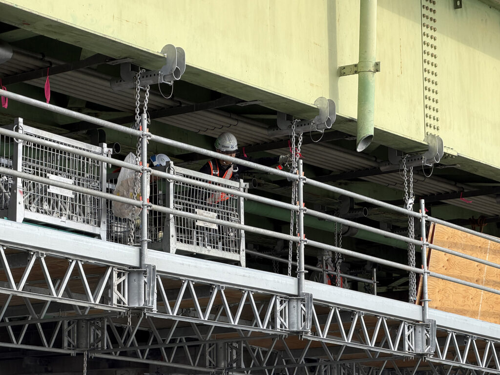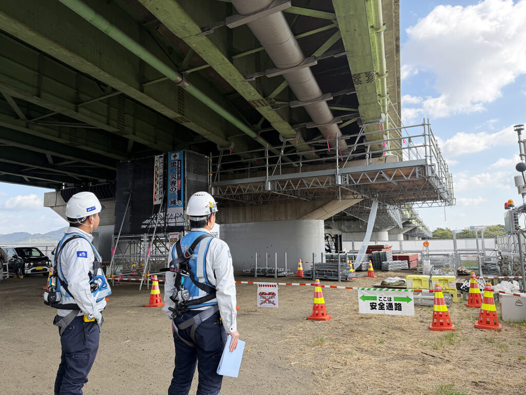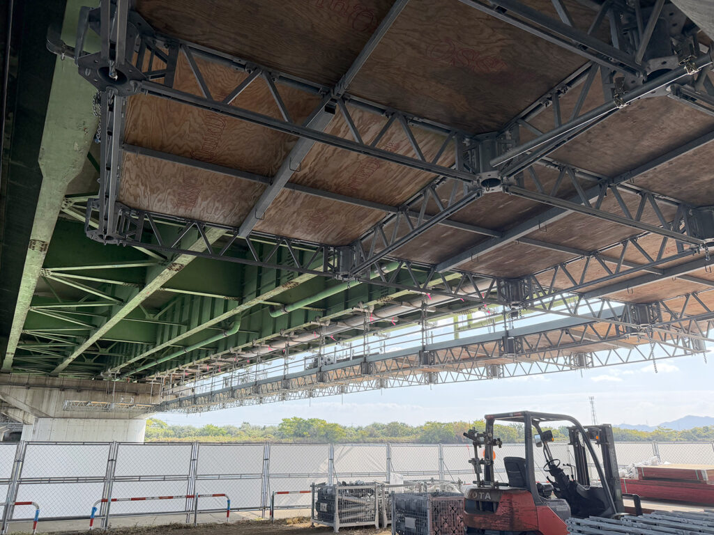 編: 国道も関係している工事では、コストだけでなく、道路を利用する多くの方々への影響も大きな判断材料になるのですね。では、システム足場が完成した後は、どのような作業が始まるのですか?